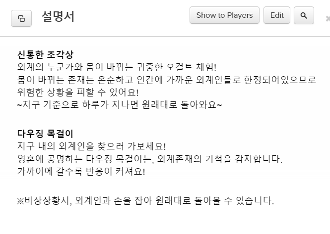 시나리오 원본은 얄님에게 찾아가면 받을 수 있고!!